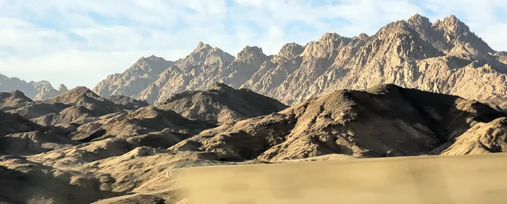 Nous avons réservé un taxi qui nous emmène de Marsa Alam jusqu’à Louxor. Le route s’étend sur environ 330 km, soit environ 4 heures de voiture. Ce trajet sinueux traverse le désert du Red Sea Governorate. Nous passons plusieurs checks points policiers où nous devons montrer nos passeports et nous inscrire sur un registre avant de nous enfoncer dans le désert. Le contraste est saisissant entre la mer Rouge et les paysages arides. L’ombre des dunes alterne avec les plateaux rocheux.