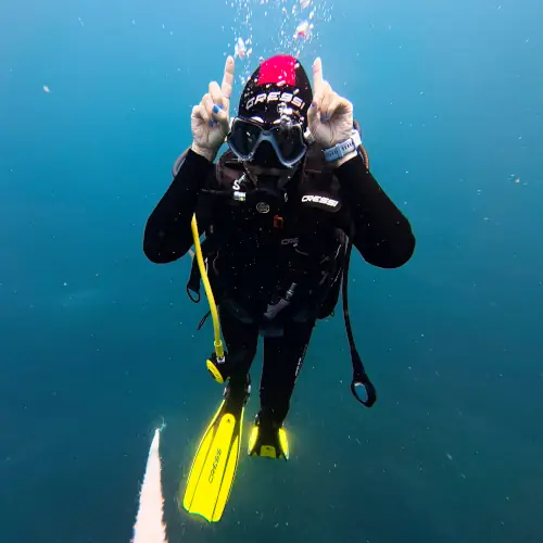 La visibilité est excellente, mais l’eau à 18 °C nous fait bien comprendre que le bonheur se mérite.